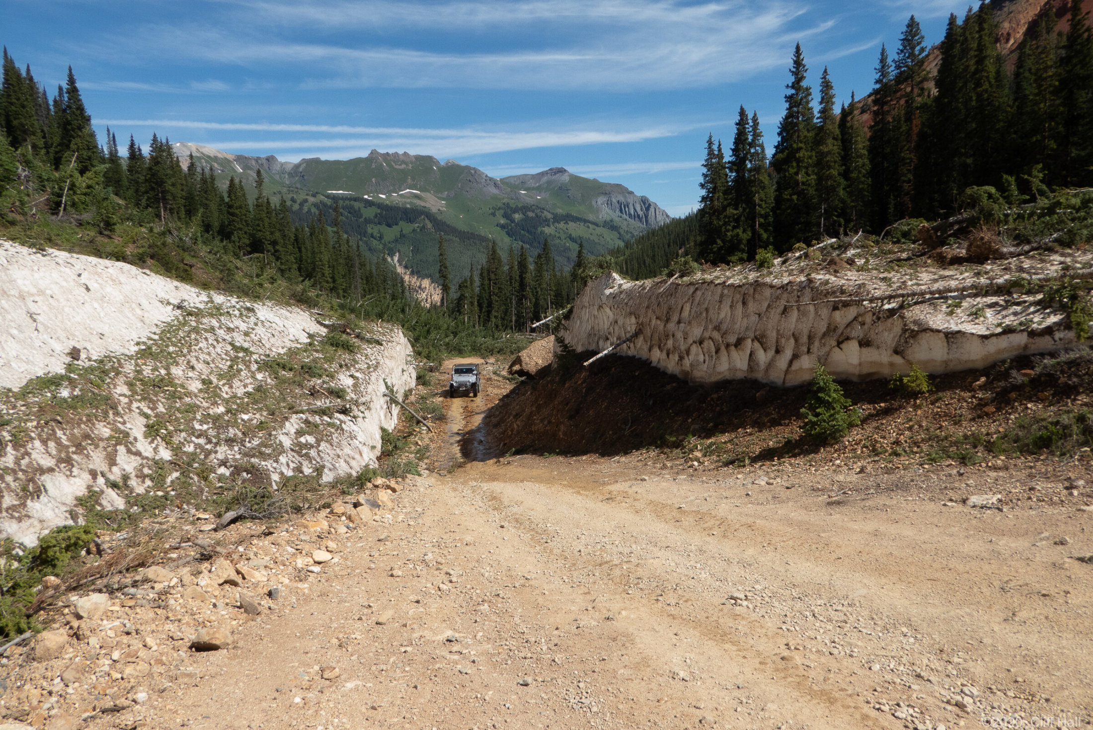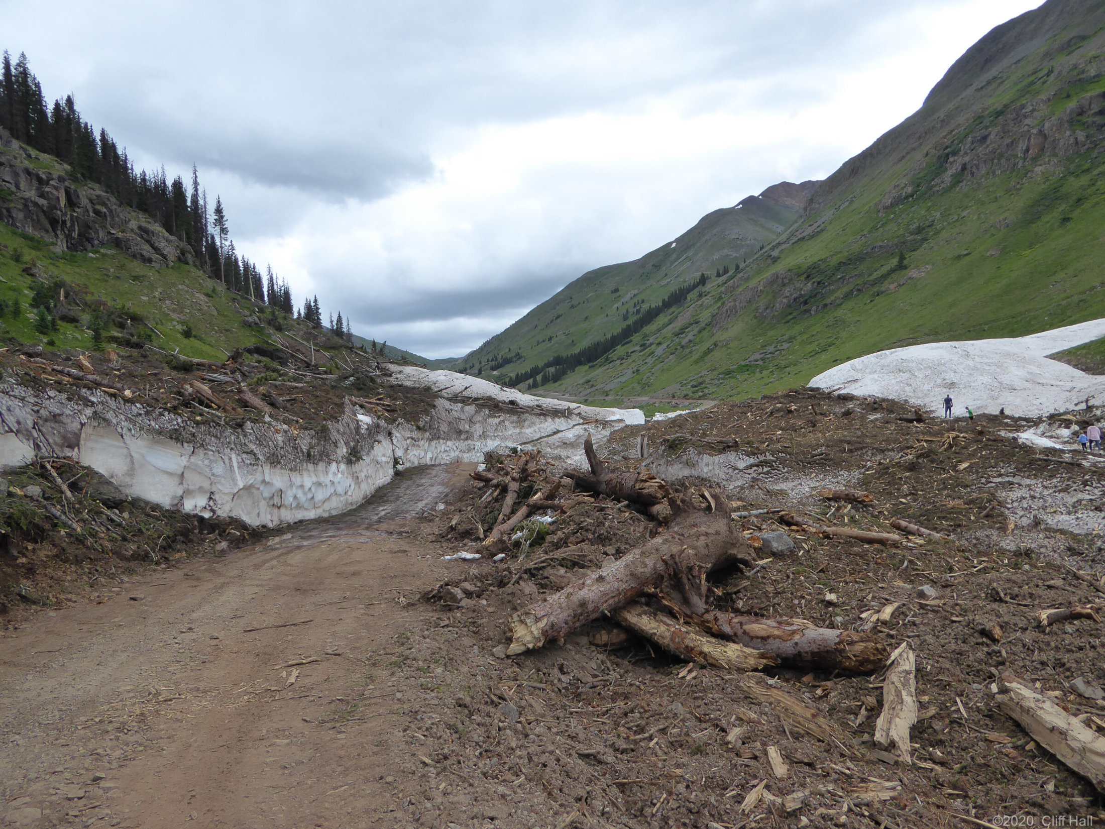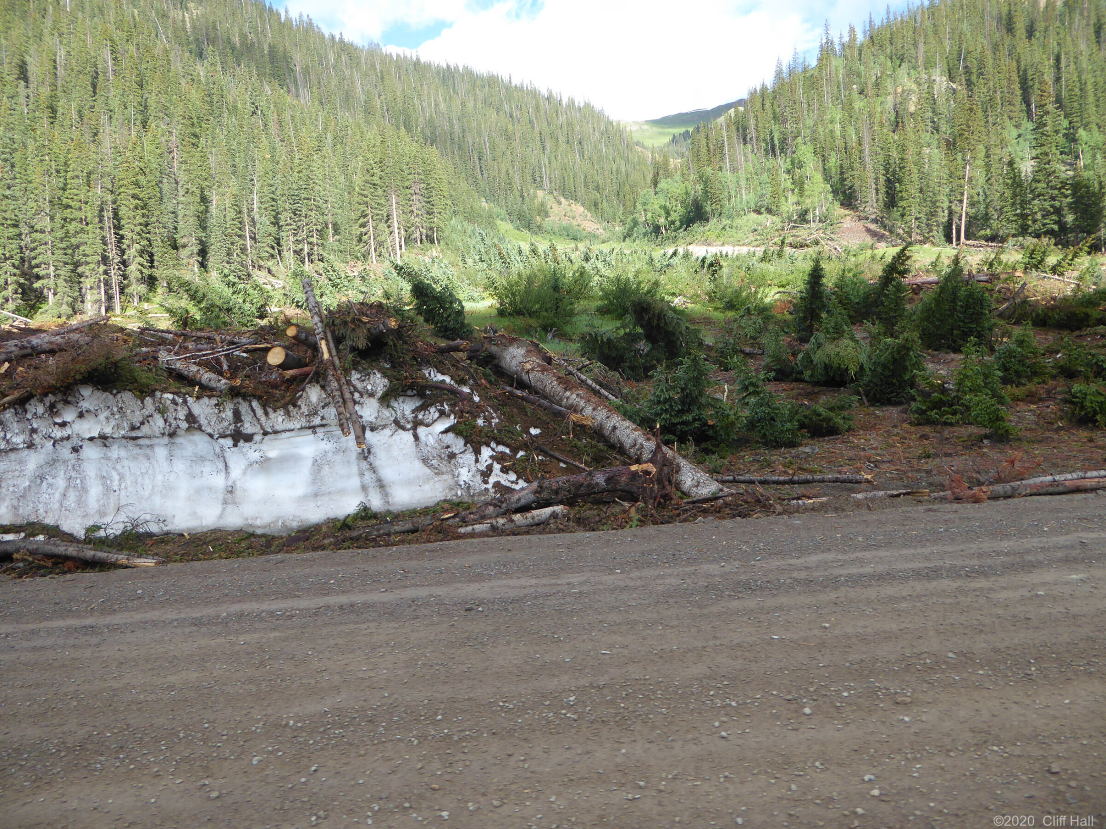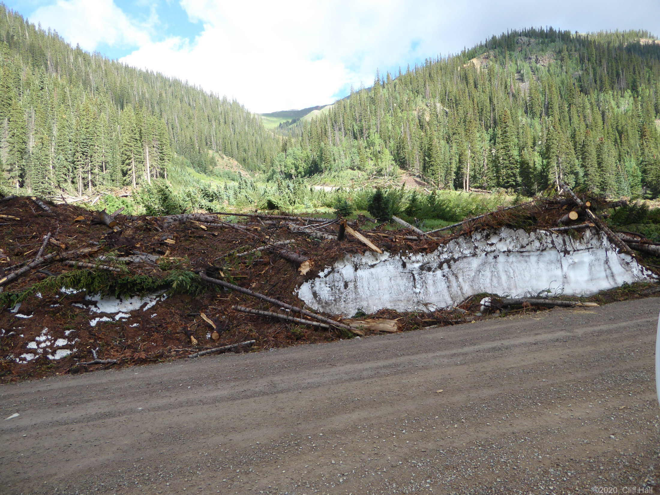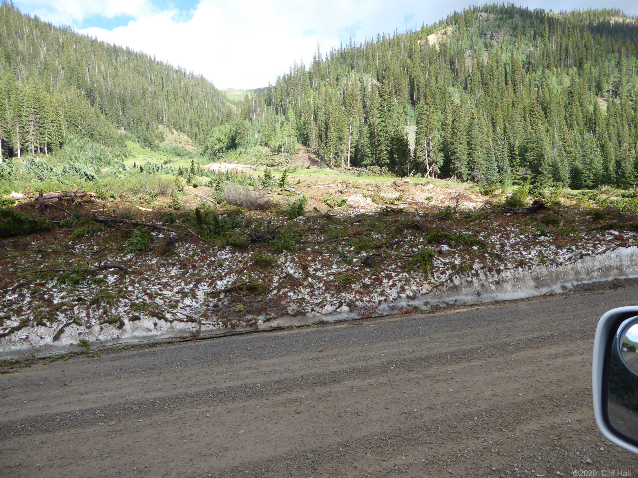 Bulldozers were still clearing Co Rd up ahead. Realize this is in August the debis in the Spring was over 100 feet deep. Near Silverton, CO
