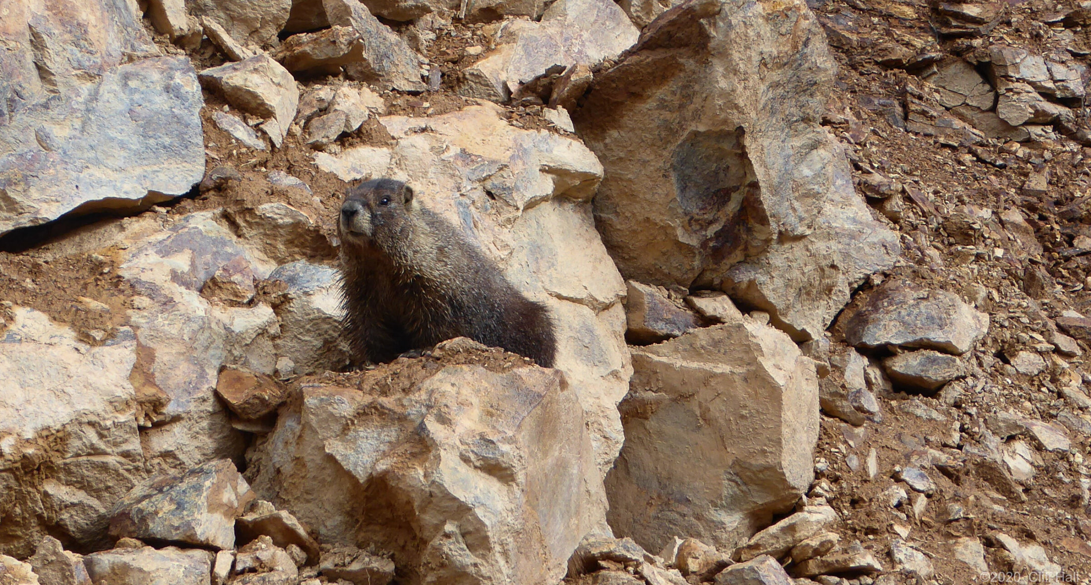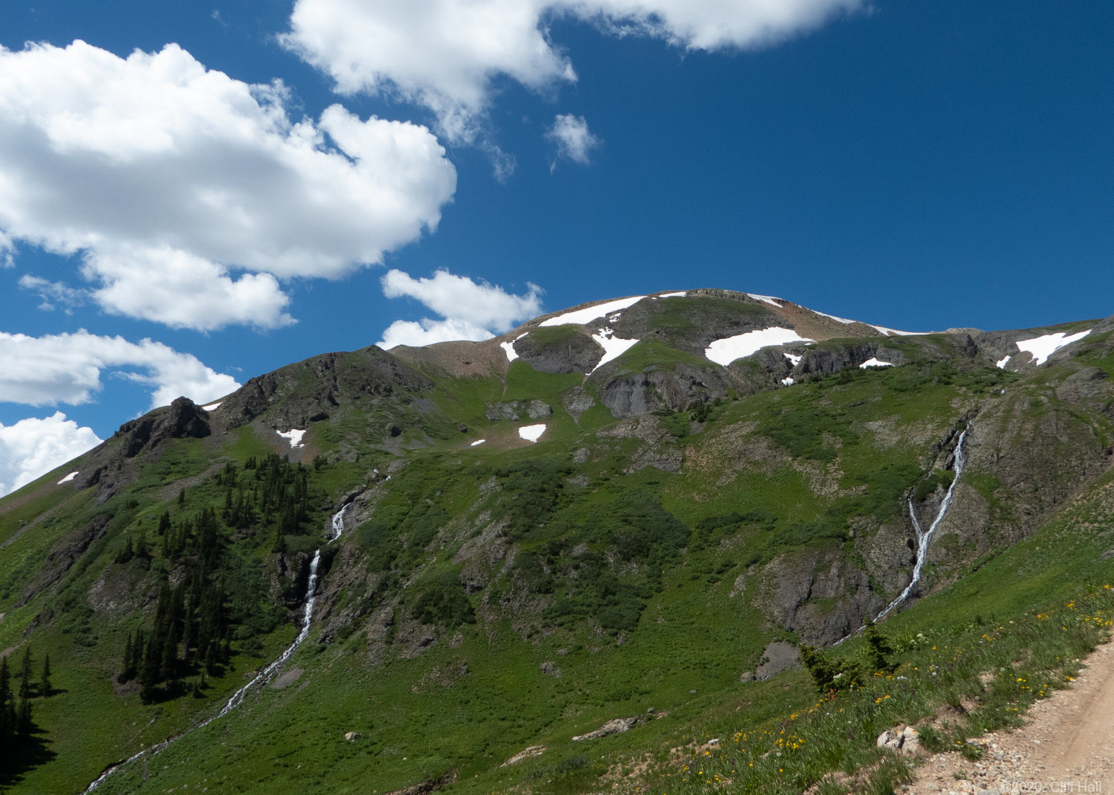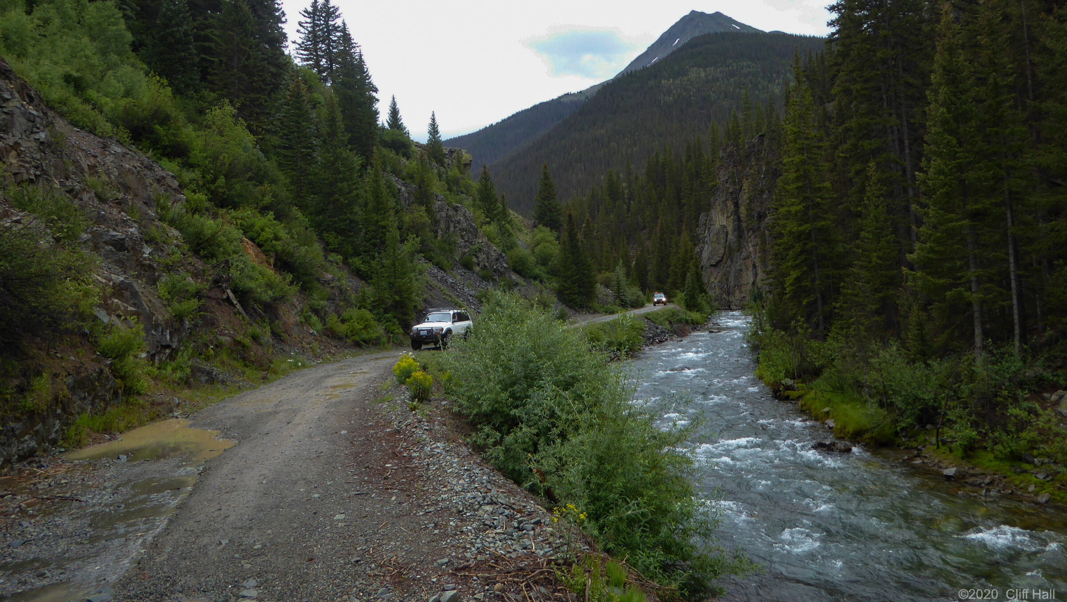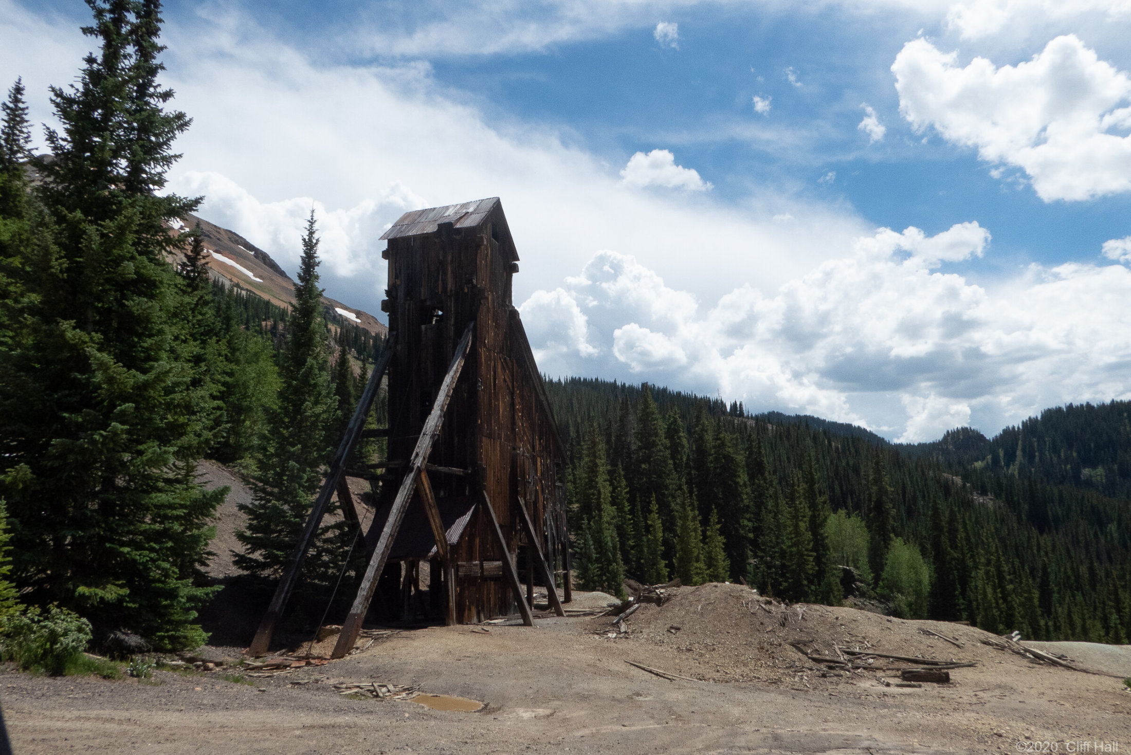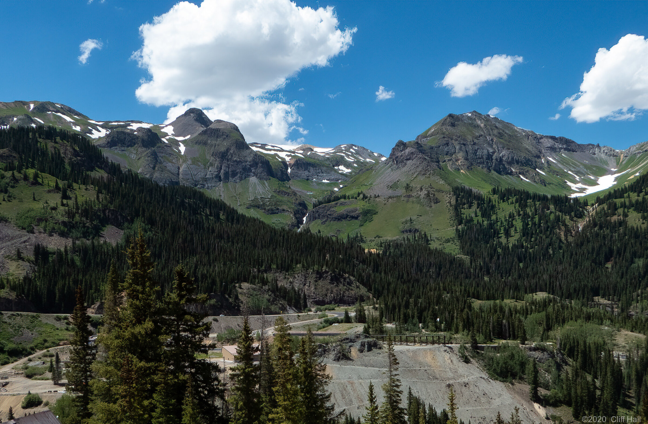Bulldozers were still clearing Co Rd up ahead. Realize this is in August the debis in the Spring was over 100 feet deep. Near Silverton, CO