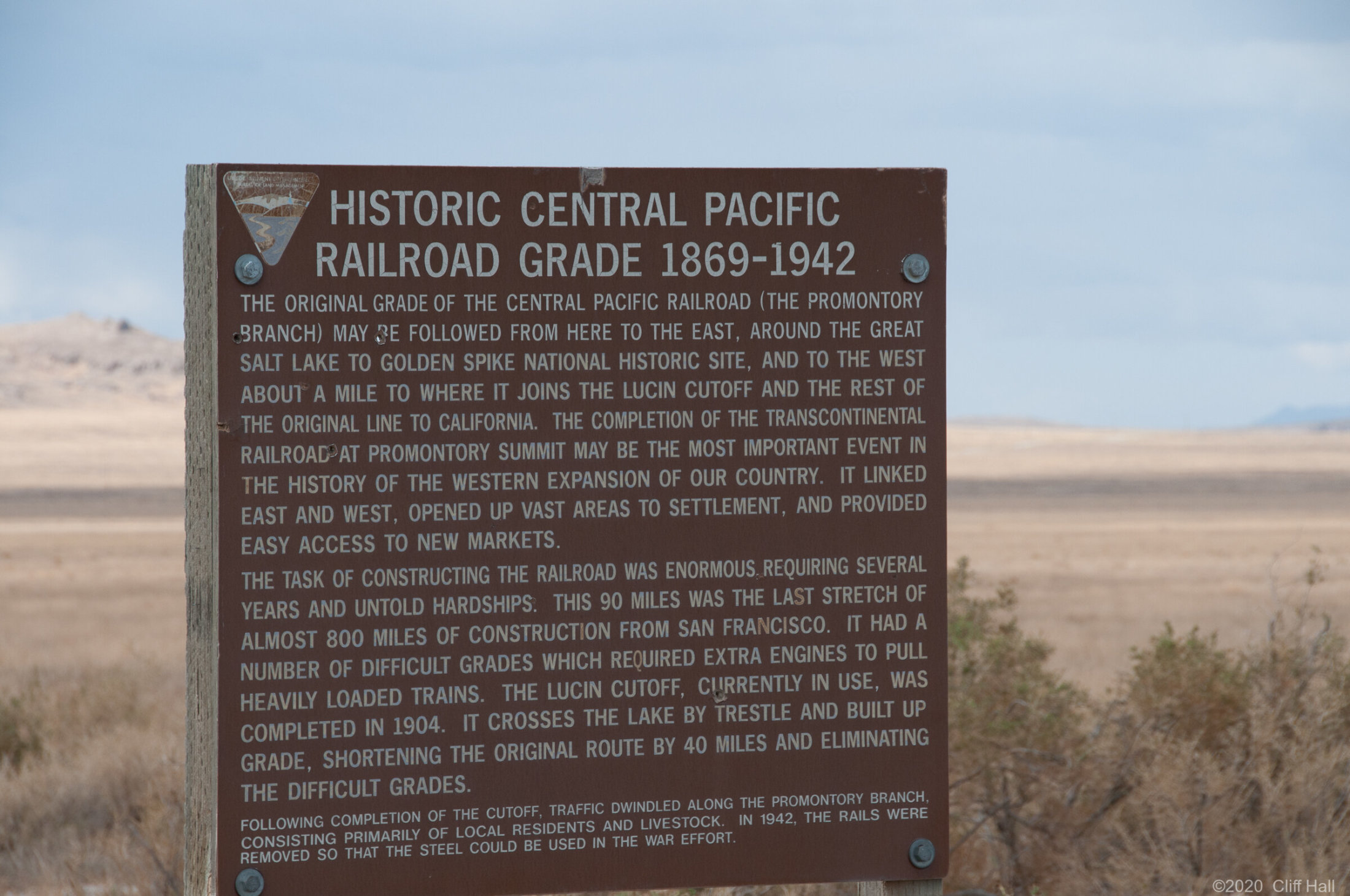 Amazing to see all the earth moving required as you follow the old railbed, as it was all done by hand. Promontory Summit, Utah