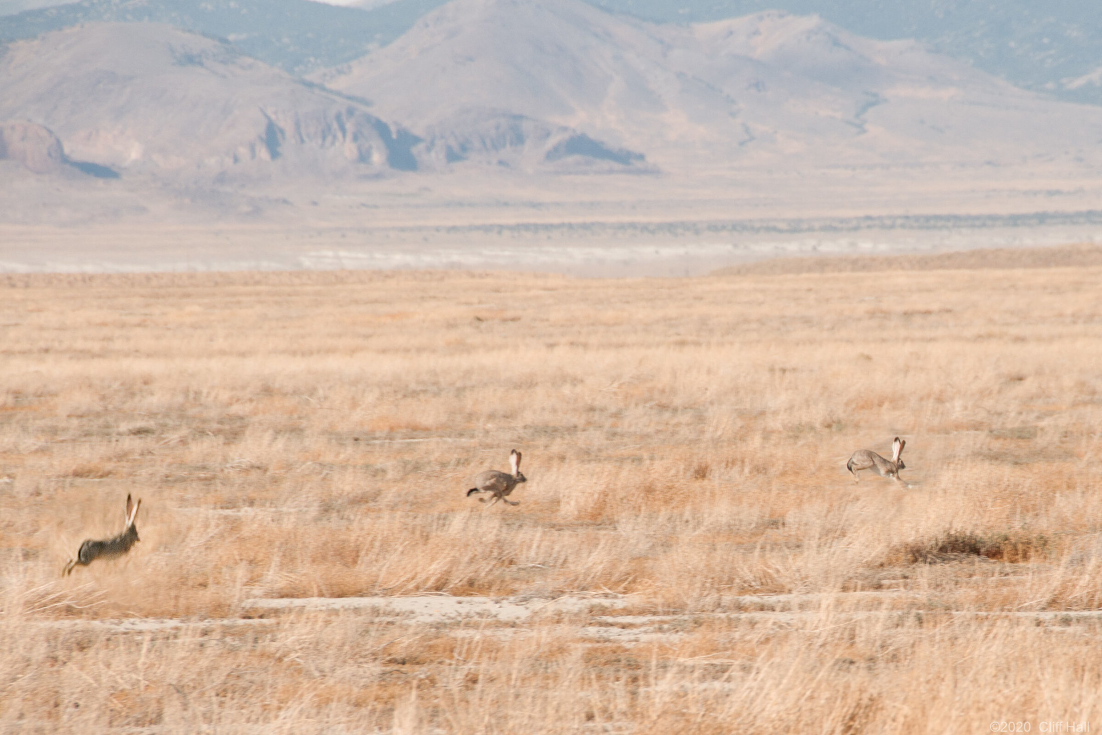 Three shots of a black tailed jackrabbit (LEPUS CALIFORNICUS) combined into one image sequence. Best viewed large. Lucin Sun Tunnels, Utah