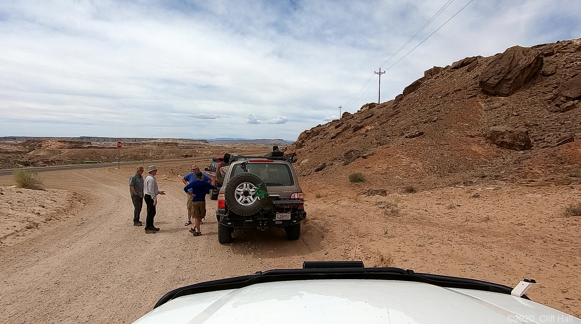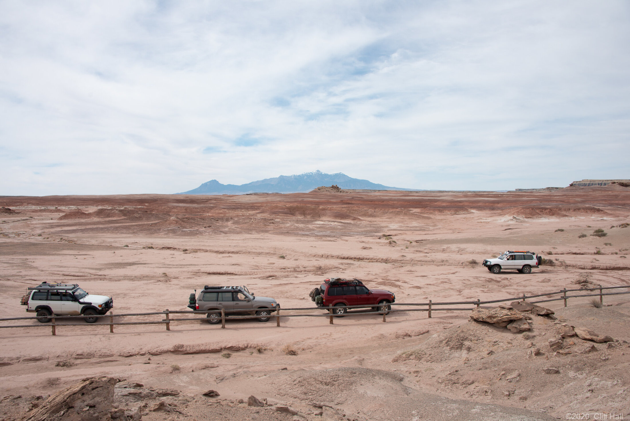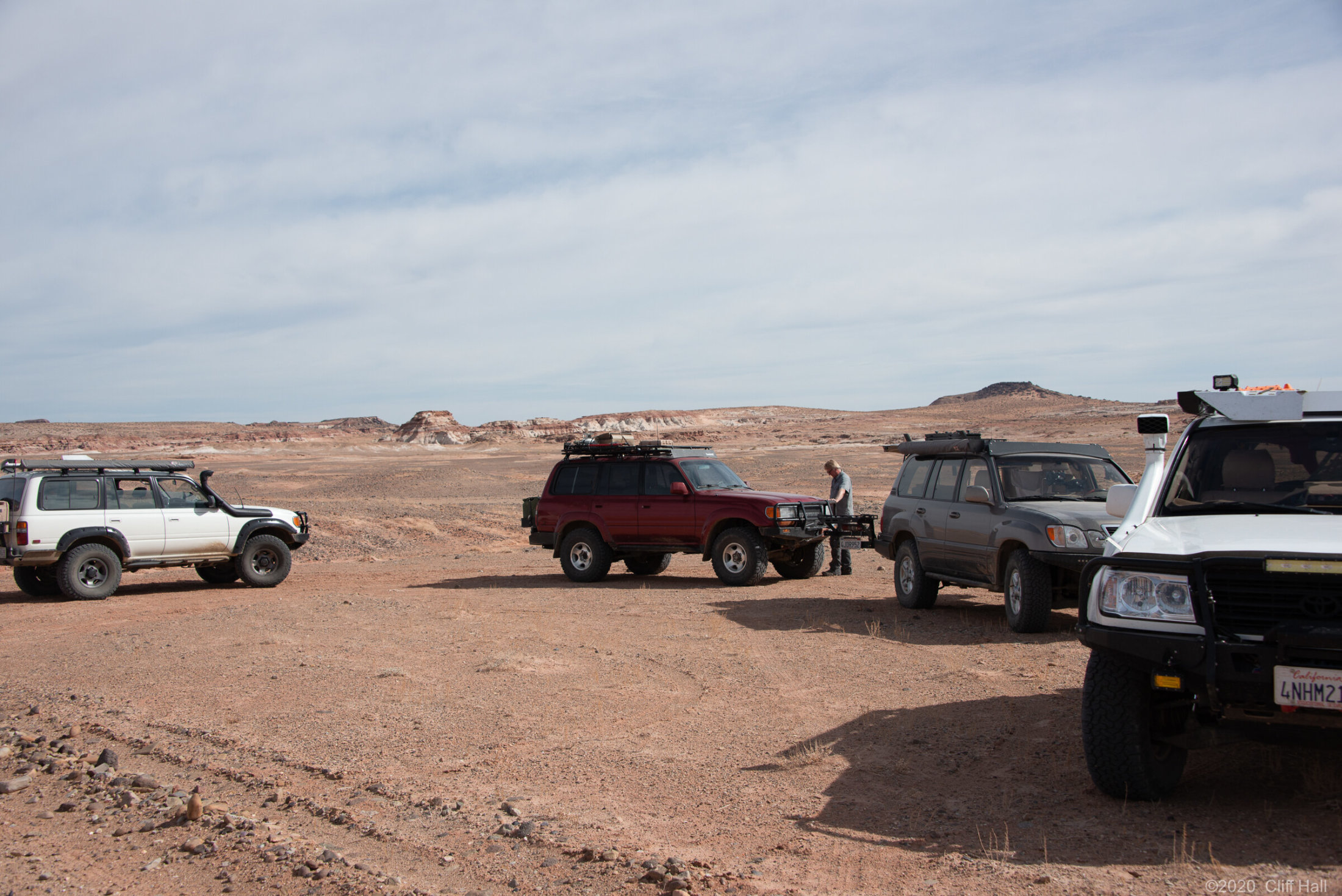 Land Cruisers at the end of the road