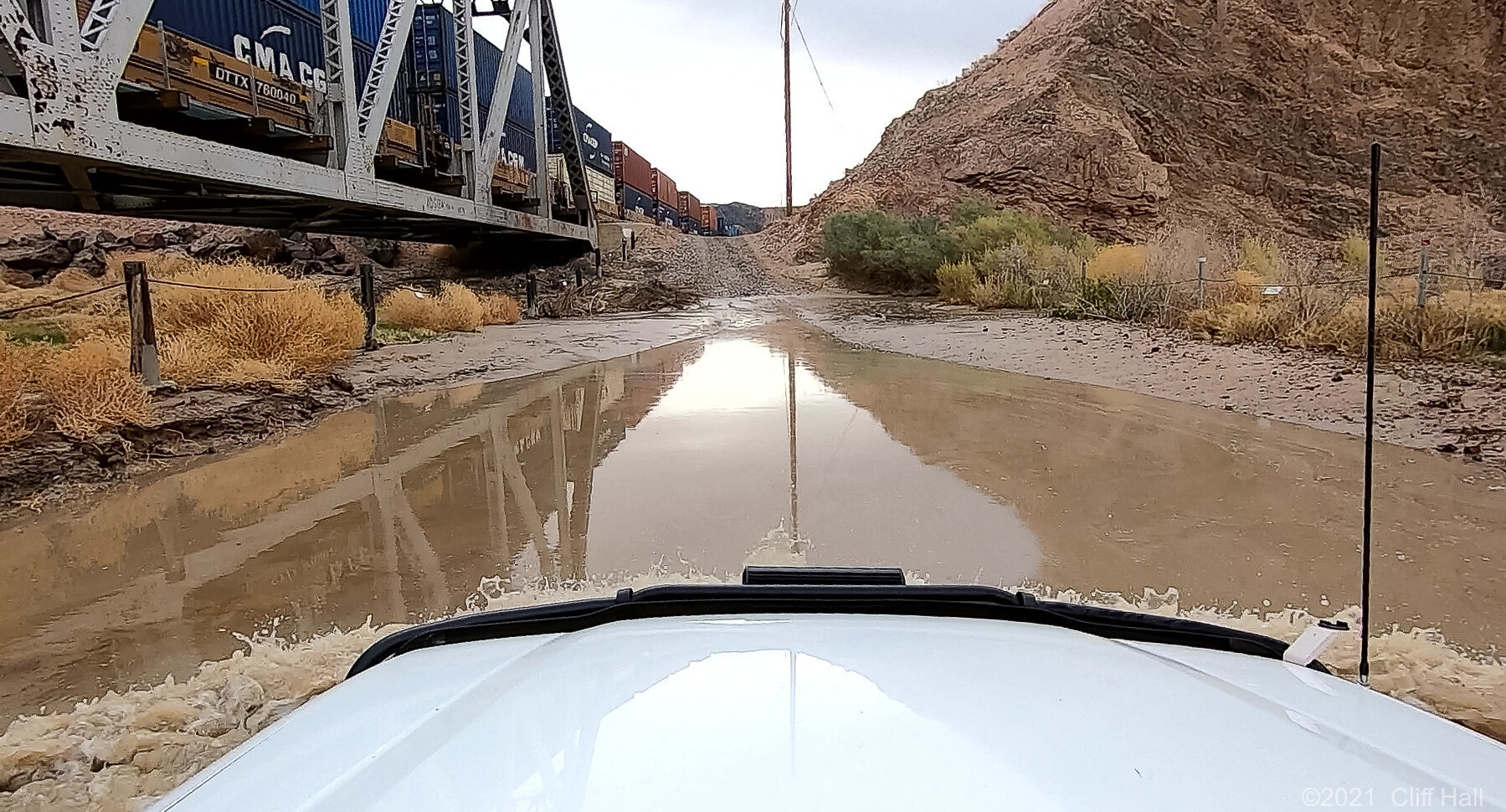 Cross under the train and ford the Mojave River