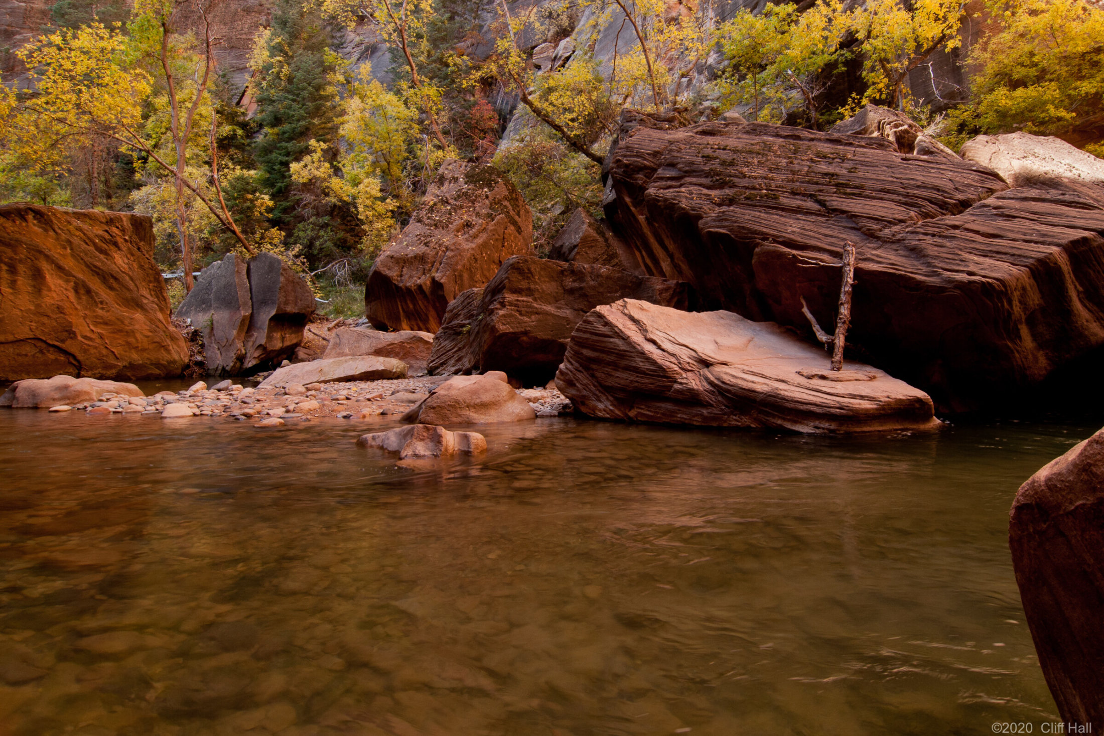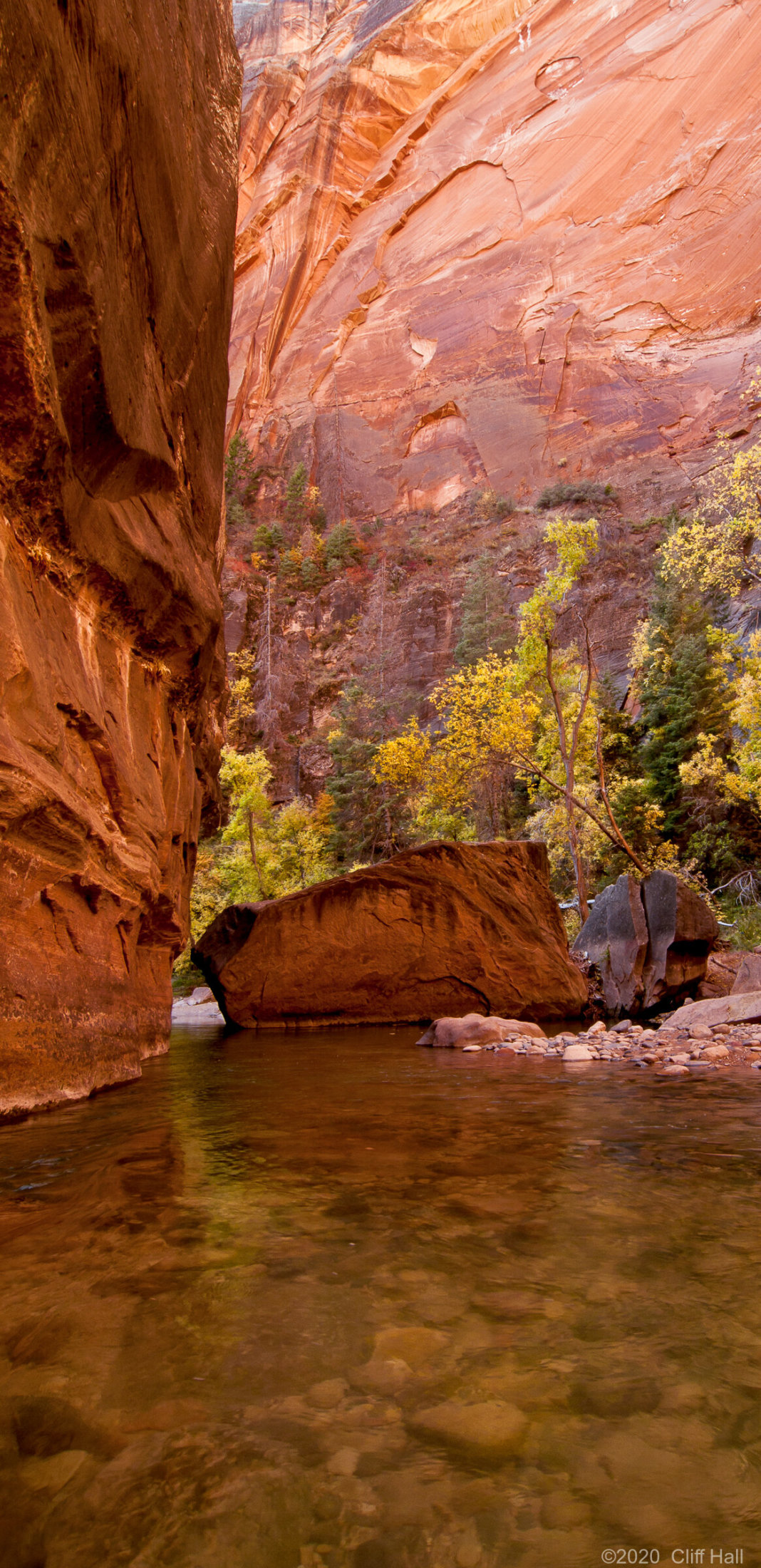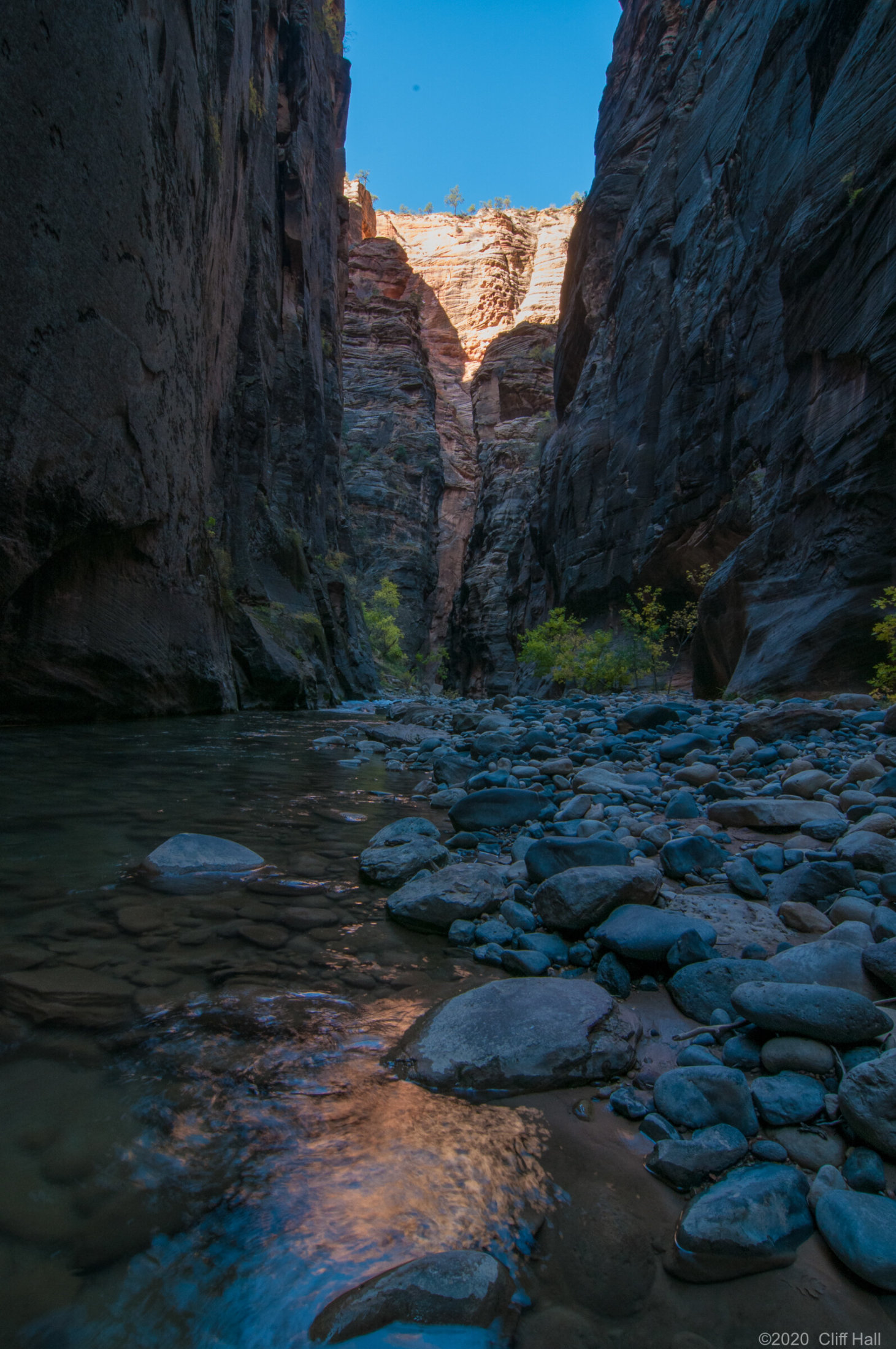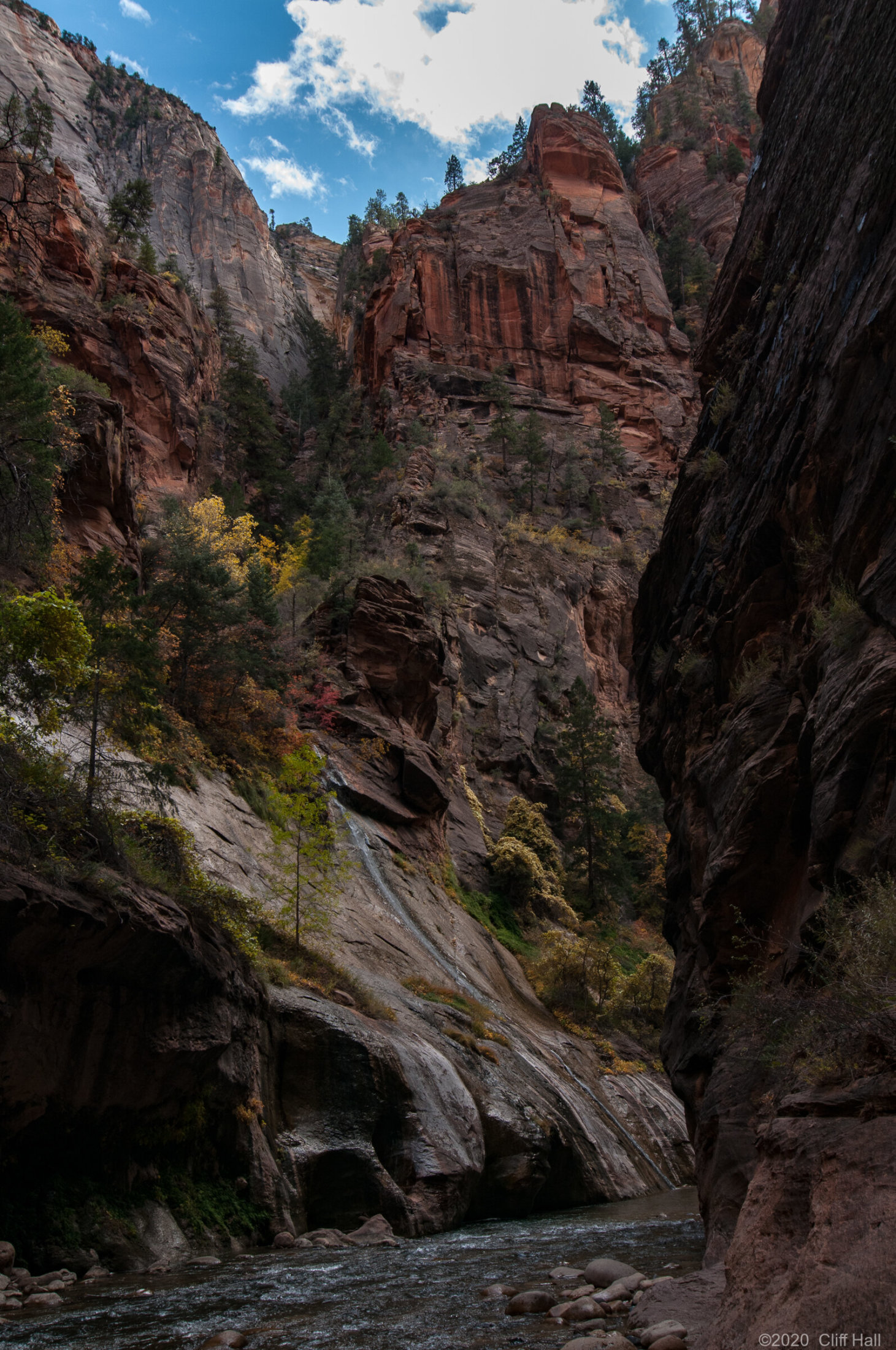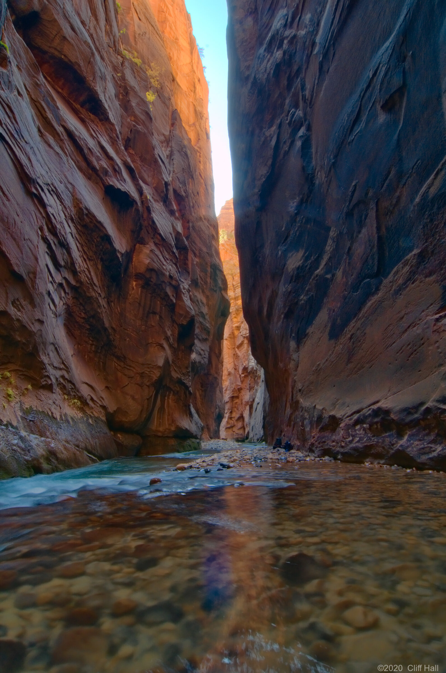 An amazing hike in the narrow canyon with walls that go up for a thousand feet. We had drysuit pants and water shoes as much of the hike is in the river. The water temperature was 45. Zion National Park, Utah