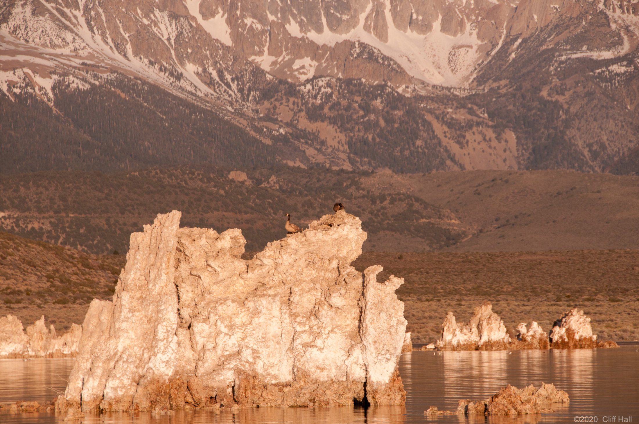 Geese on top of the tufa