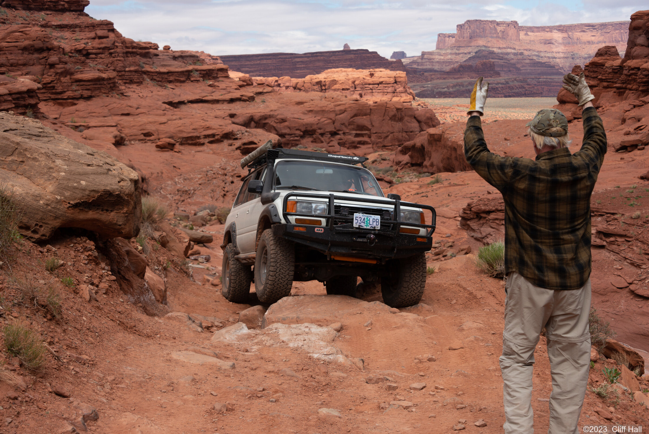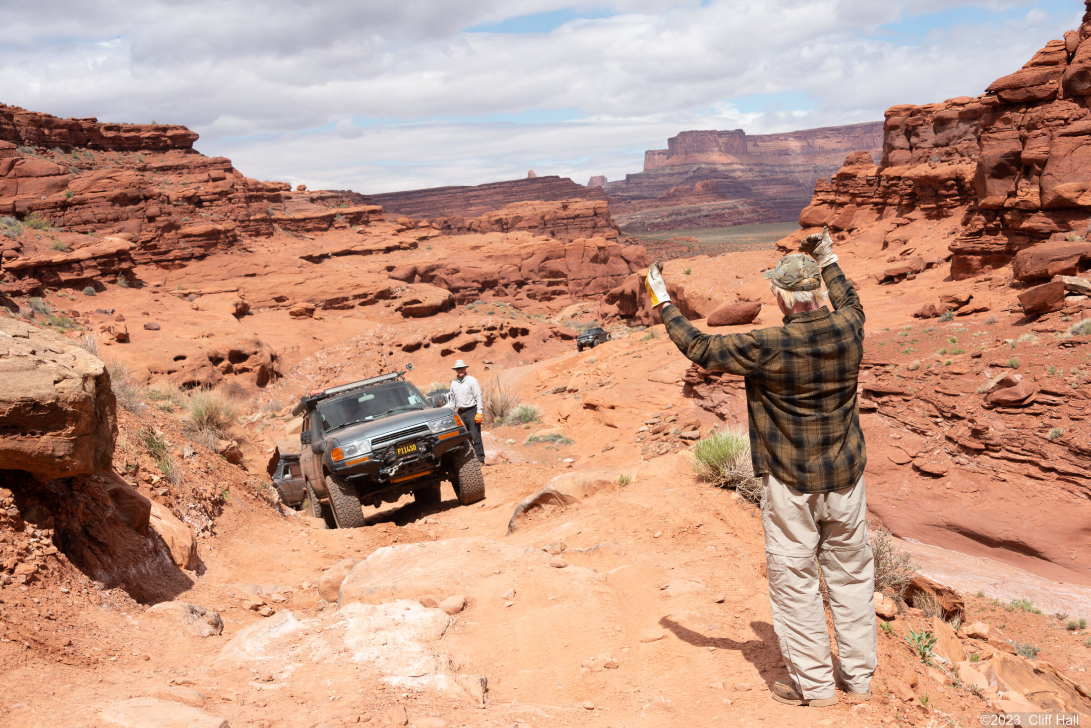 Don guiding Cliff in a tight spot